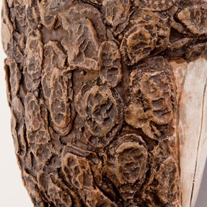 - Sculpted of polyresin, it takes on the appearance of bark and seemingly emerges from the tree trunk with a shushing motion