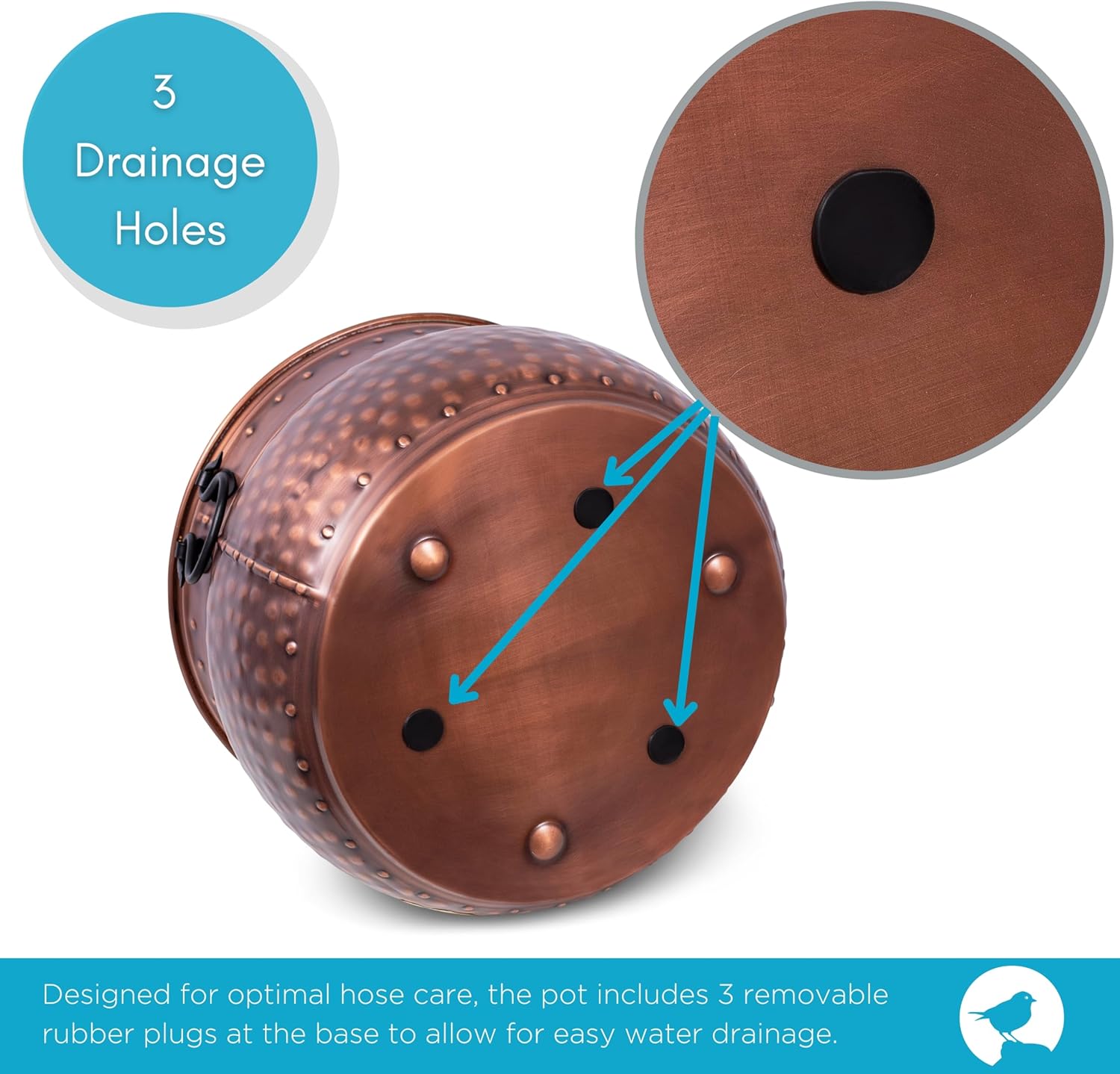 BirdRock Home Water Hose Holder with Lid | Ground Garden Hose Pot | Decorative | Handle | Embossed | Steel Metal with Copper Accents | Outdoor or Indoor Use