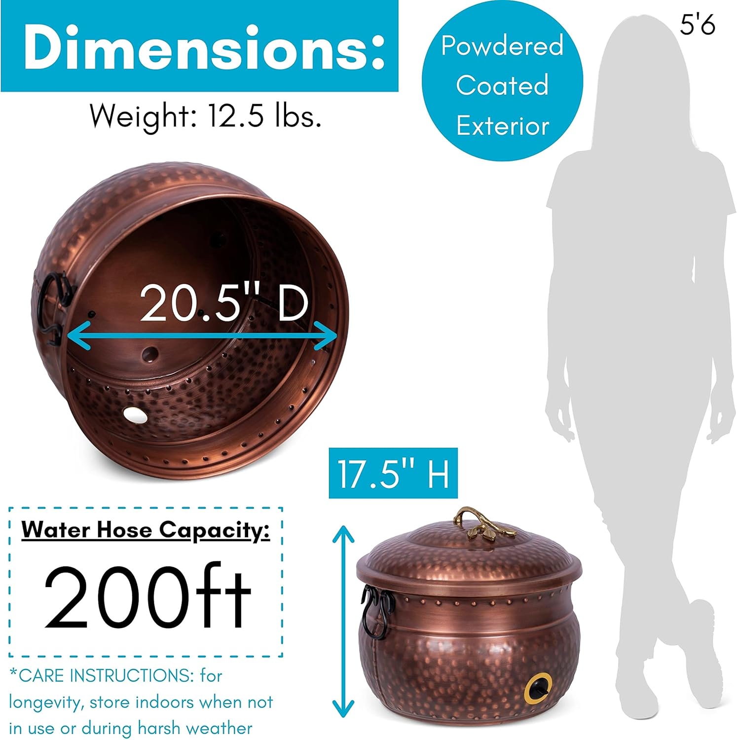 - DURABLE STEEL CONSTRUCTION: Crafted from high-quality steel with copper accents, this lightweight yet sturdy hose holder is crafted to withstand the elements for years of reliable use.