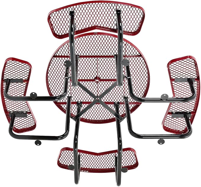 - COMFORTABLE SEATING: From lunchboxes to pizza boxes and more, the 46” round table top can hold all the food & beverages users bring; 4 bench seats measure 38” wide x 12” deep and allows 2 average adults to easily fit on each bench