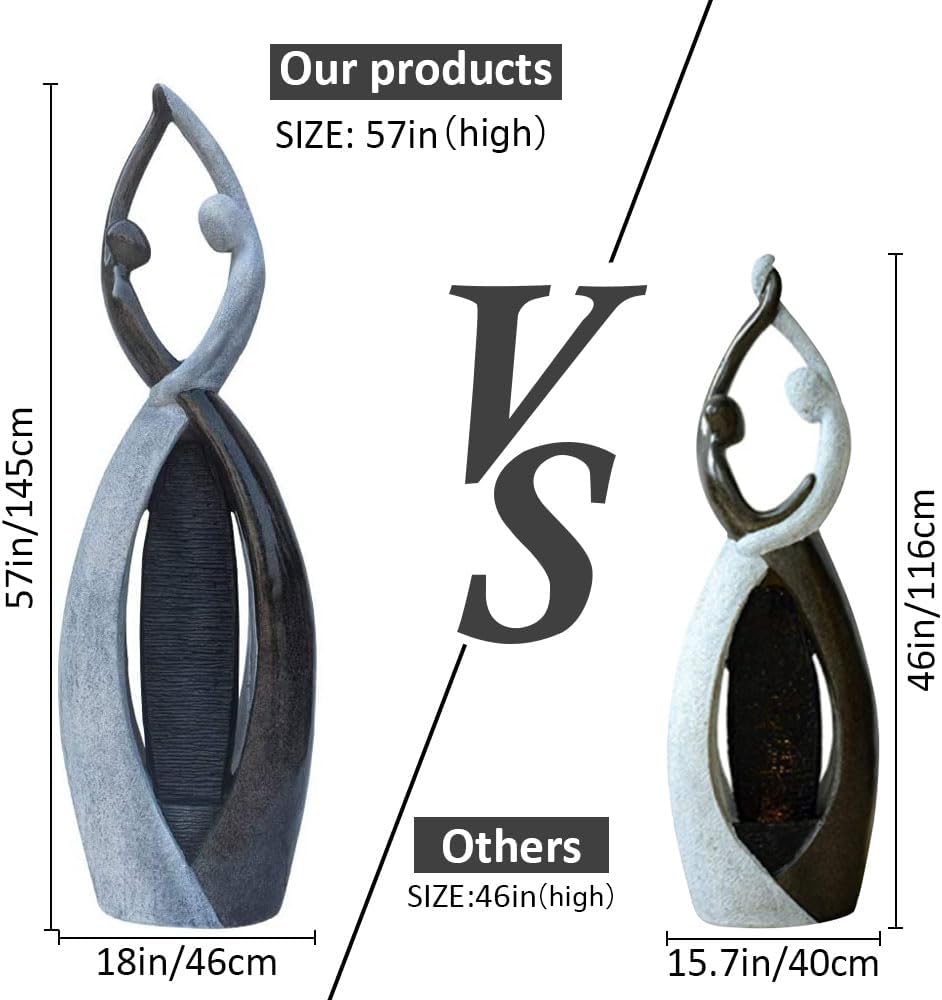 - Chic & Contemporary Art Decor for Indoor/Outdoor Spaces: Transform your living area into a haven of tranquility with this striking 57-inch tall sculpture fountain. Its unique "dancing couple" design and "grey-black" finish provide a modern artistic touch that seamlessly blends with contemporary, traditional, or zen-inspired decor. Perfect as a focal point for your patio, yard, balcony, entryway, or even large indoor spaces, it's an ideal home accent, garden ornament, or housewarming gifts