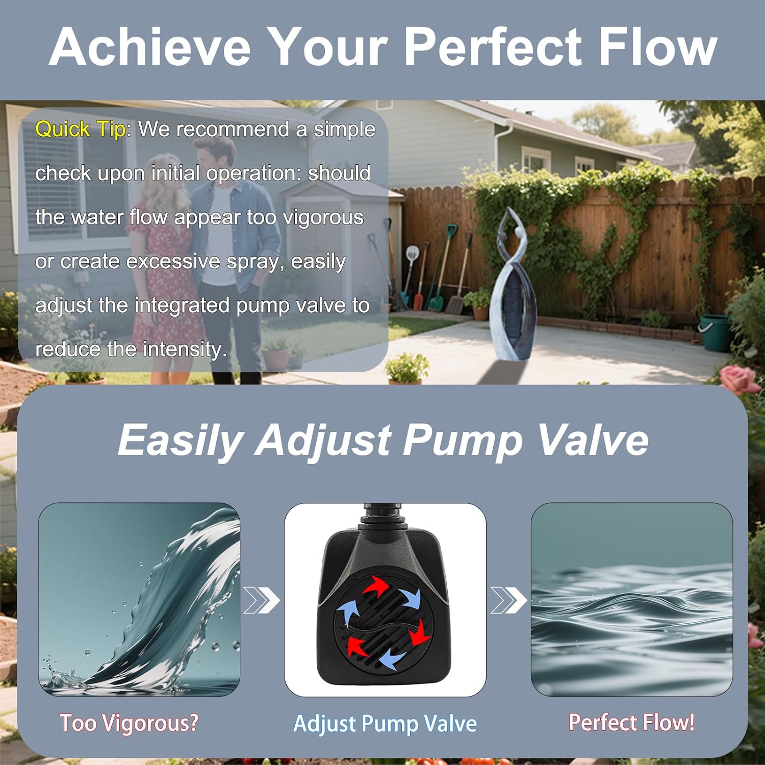 - Effortless 5-Minute Setup & Placement Versatility: Experience instant tranquility! Our 57-inch tall outdoor water fountain boasts tool-free assembly that takes just 5 minutes or less, allowing you to enjoy its beauty almost immediately. Crafted with an ideal weight, it's substantial enough to withstand outdoor elements yet light enough for easy repositioning in your garden, patio, deck, or balcony, ensuring perfect placement for any occasion