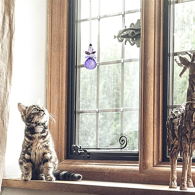 - Use Scenario: The purple crystal angel light catcher pendant is not only a perfect interior decoration, but also a fun toy for children to learn and play. If you have pets, your pets will also use our light catcher pendant as a toy, because the hanging prism can reflect many rainbow spots in the sun. Pets love to play the game of catching rainbows