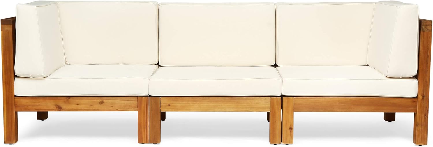 GDFStudio Outdoor Sectional Sofa Set | 3-Seater | Acacia Wood | Water-Resistant Cushions | Teak and Beige