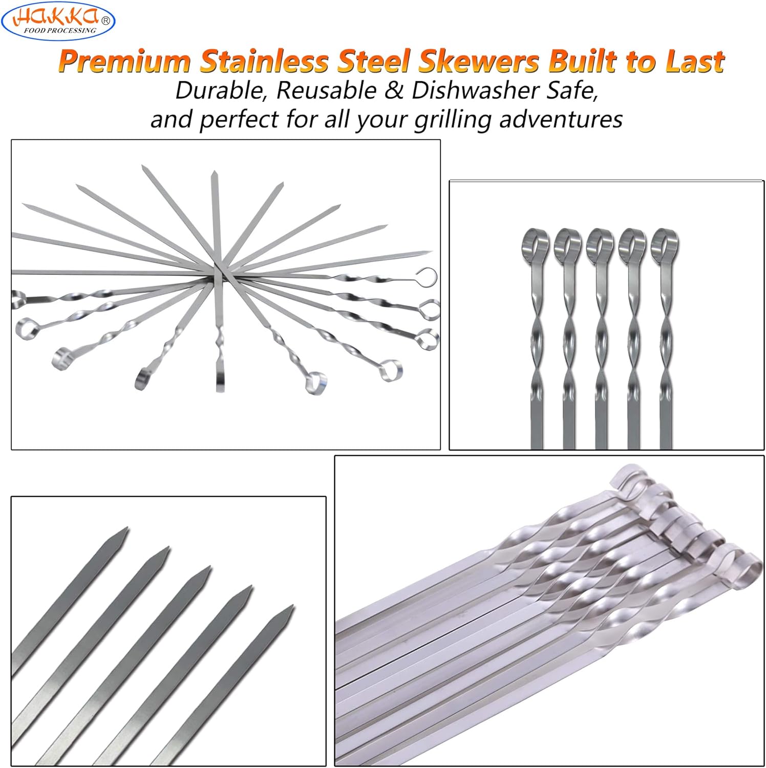 - Food Grade quality stainless steel skewers,Cook healthier and tastier.