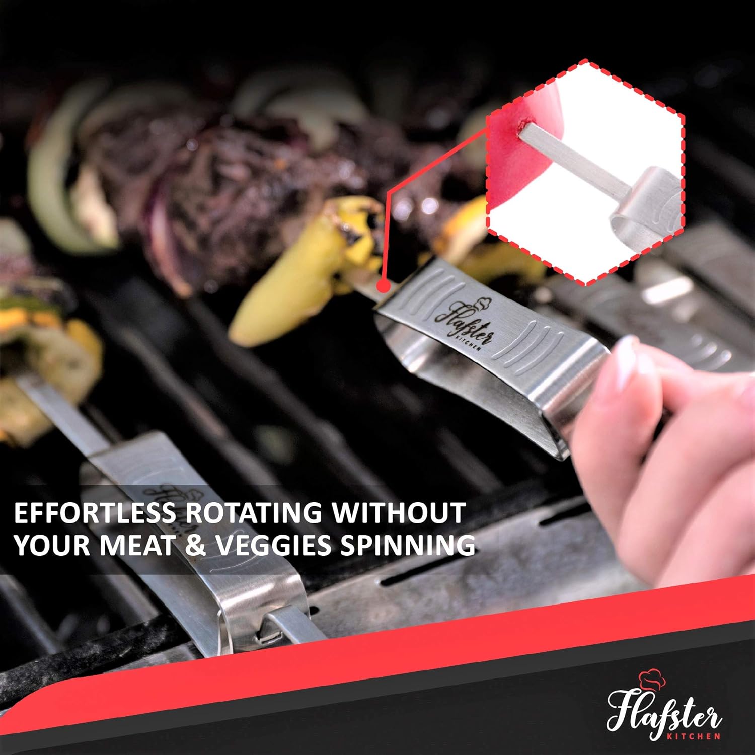 - FLAT BLADE AND ANGLED TIP: And that makes them perfect for grilling meat, chicken, shrimp and vegetables; Easy to use and turn around without the veggies and meat falling off the sticks;