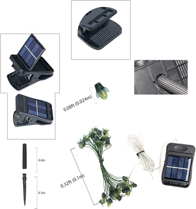 - Special Feature : Ground stake included, Waterproof, Clip style solar panel, Cordless, Firefly shaped LED bulb