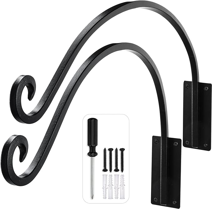 - CONVENIENT PACKAGE: The plant hook measures 16” X 2” X 11”, Each package includes 2 16-inch bracket and 8 self-tapping screws and 8 expansion screws, making it more convenient and quick to use.