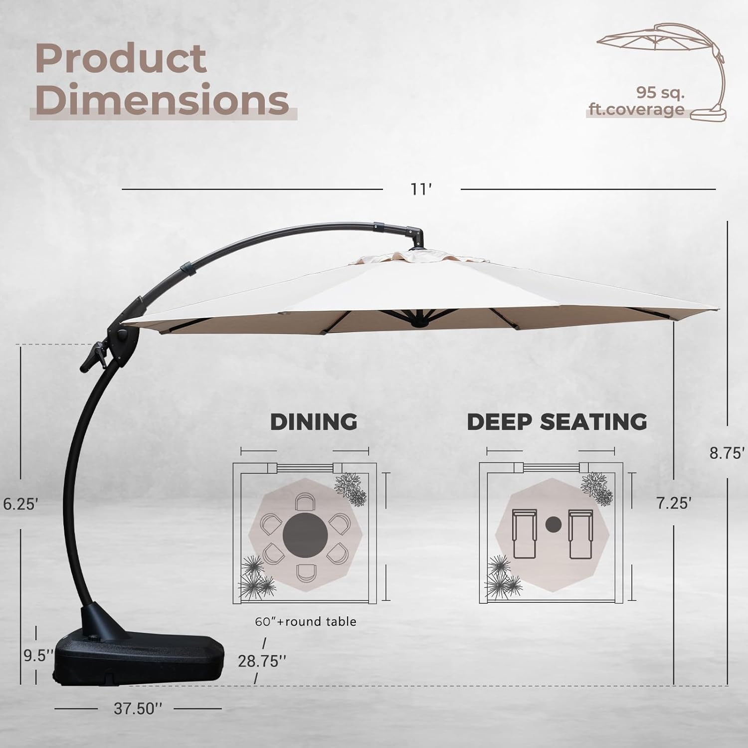 Grand patio 11FT Cantilever Umbrella with Base Outdoor Large Round Aluminum Offset Umbrella for Patio Garden Backyard (Champagne, 11 FT)