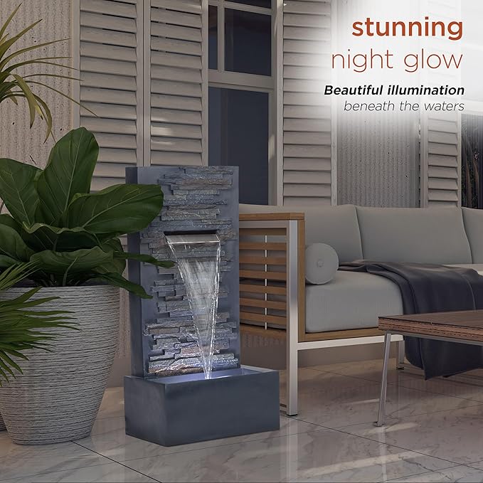 - Elegant Cascading Stone Design: The 32" Tall Modern Stone Wall Fountain adds a stunning and natural touch to your garden, patio, or backyard with its realistic stone wall design and soothing water flow.