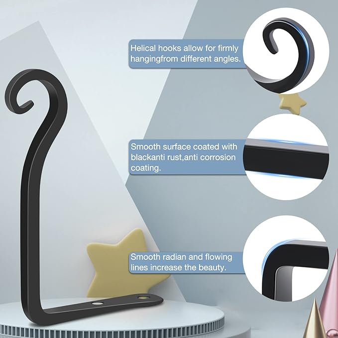 - 【EXCELLENT TECHNOLOGY】These hanging plant hooks adopt high quality solid metal structure, which is firm and not easy to bend. The surface of our hooks for hanging plants outside is coated with black coating, which is rust proof and durable. You can fix plant hanger bracket on the outdoor wall of your house without worrying about wind and rain.