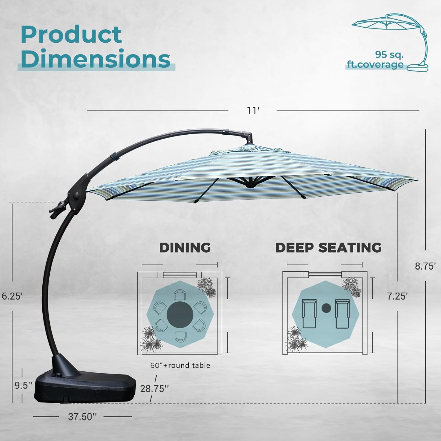 Grand patio 11 FT Cantilever Umbrella with Base Outdoor Large Round Aluminum Offset Umbrella for Pool Garden Backyard (Stripes, 11 FT)