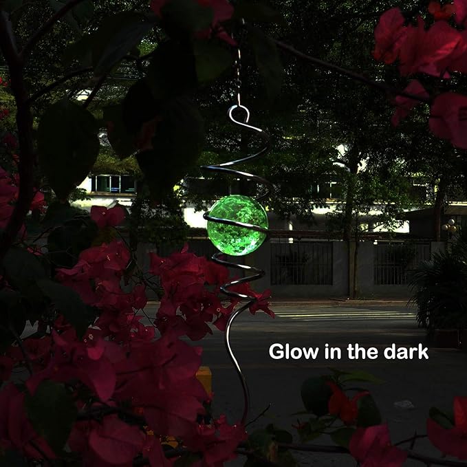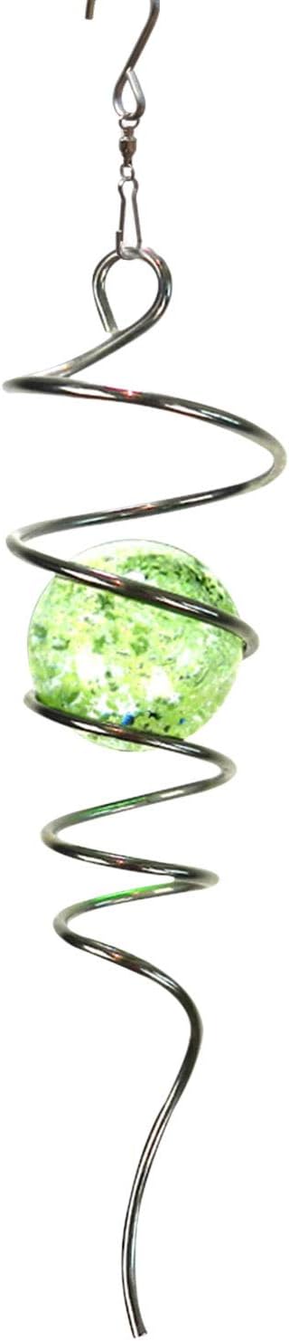 - Total Length 13inch from the hook to bottom of the stainless steel spiral,2.5inch width for spiral, glass ball's size is 2inch ,including a spinning hook and swivel, easy to hang and spin by wind or motor,2 colors choices of the balls