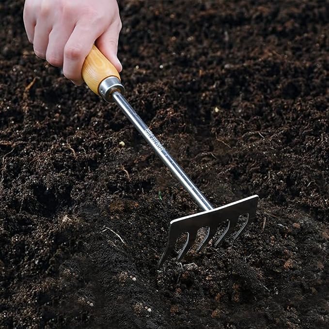 Gardtech Garden Tool Set, 5 Pcs Gardening Tool Set with Weeder Puller, Dibber, Transplanter, Big Trowel, 5-Claw Cultivator - Wooden Handle Heavy Duty Stainless Steel Gardening Hand Tools