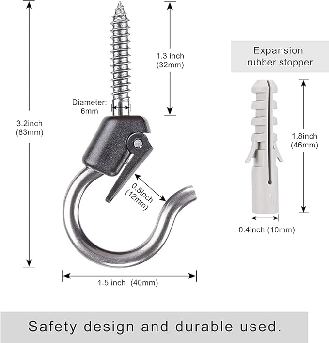 - 【Safety Buckle Design】A movable buckle is installed on the ordinary screw, and the hanging items will not fall out, which increases the safety performance of the product.