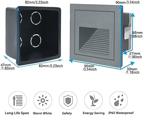 - Good quality: Gray shell, warm white 3000K, aluminum corner staircase light step light, IP65 waterproof, suitable for indoor and outdoor; IP65 can prevent the splashing water, but cannot be installed directly under water