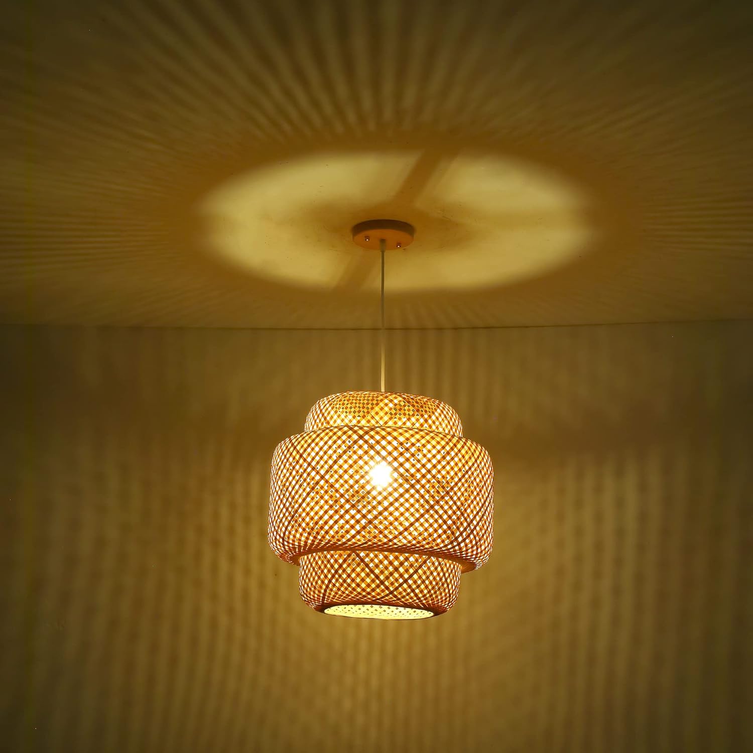 - 【Natural Material & Hand-woven】 This bamboo chandelier is made of natural environmentally friendly bamboo, which is made with exquisite hand-woven technology, which is safer and healthier, and each one is unique.