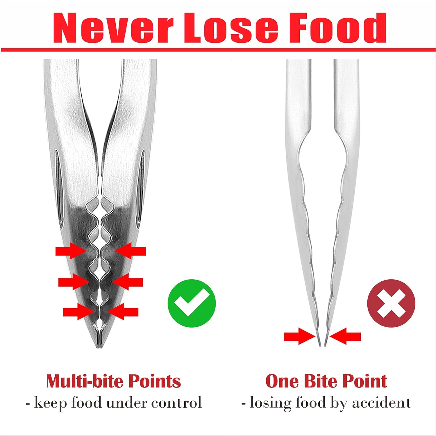 - All under control - creative tooth-like head tongs: Our newly designed tongs can provide greater control over food, such as being able to bite food of any size more accurately, easily and safely without tearing, falling or feeling laborious -exactly something that’s difficult for common scalloped head tongs to achieve, but it’s also the most basic function a good BBQ tongs must meet. Just as a painter needs his brush, a grill master needs the right grill tongs. With us, you can never go wrong!
