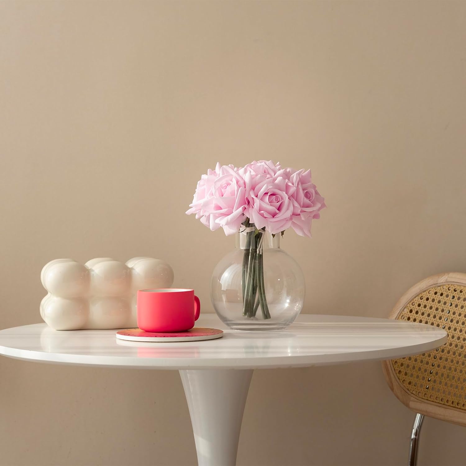Artificial Roses Single Stem 10pcs Fake Silk Flower Arrangement Bouquet Real Touch for Home Party Wedding Decoration(Light Pink)