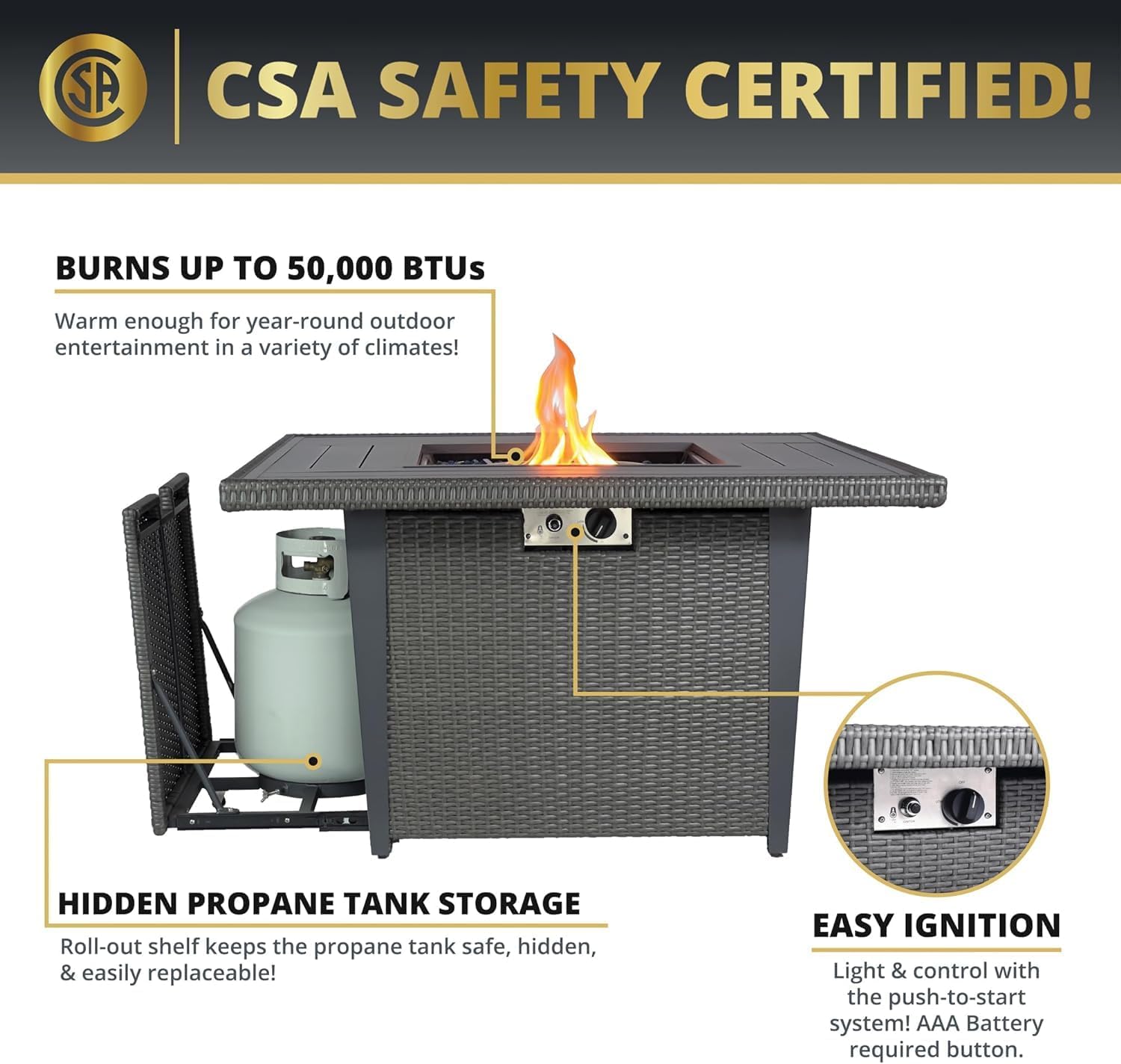 - 【All-Weather Rattan Wicker Design】Crafted with high-quality, multi-gray all-weather rattan wicker, this fire pit table is built to withstand sun, snow, rain, and rust. Perfect for year-round outdoor use, it maintains its elegance in any climate