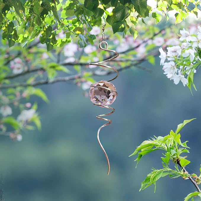 - 【PREMIUM CRYSTAL SUNCATCHER】The spiral with crystal is a special sun catcher rainbow maker, it’s Super Sparkly under sunshine. You can also add a motor(not include) to let the spiral to spin ,while spiral tail rotating (it can’t spin by itself.), the crystal ball seems to move up and down like floating and dancing in air while spiral tail rotating, presents the magical visual illusion.