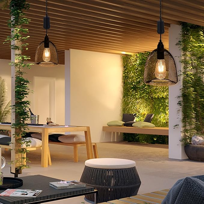 - 【Delicate Metal Cage Lamp】- Mesh hat-shaped metal lamp with warm white Edison bulb and long hanging chain with hook. The lanterns combine traditional and modern, gorgeous and simple styles, which build a warm, enlegant and sophisticated atmosphere