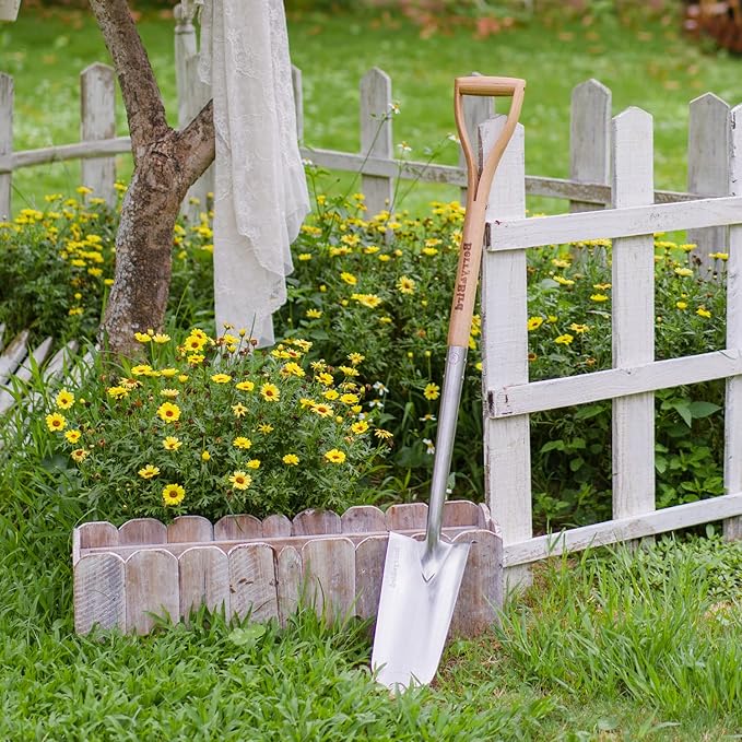 - 🌱Ergonomic Wood Handle: The handle of this planting spade is made of ash hardwood harvested from FSC-certified forests and has an ergonomically streamlined design, making it very suitable for everyone's hands. This specially designed handle can effectively reduce the fatigue of our hands and prevent injuries. The non-slip D-shaped handle keeps your wrist in a neutral position to reduce stress, providing comfort and good grip, which can firmly cut through hard and difficult surfaces.