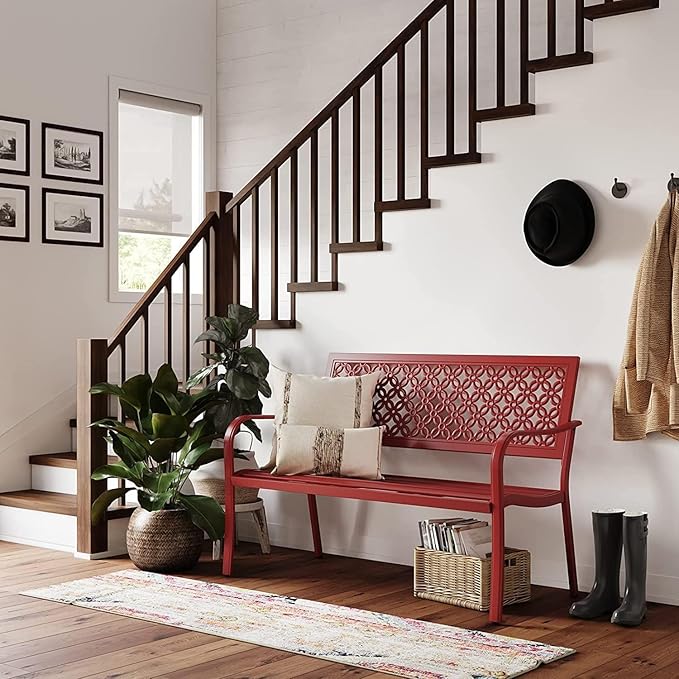 Grand patio 50" Outdoor Bench Garden Bench with Armrests Bench for Outdoors Lawn Yard Porch Red