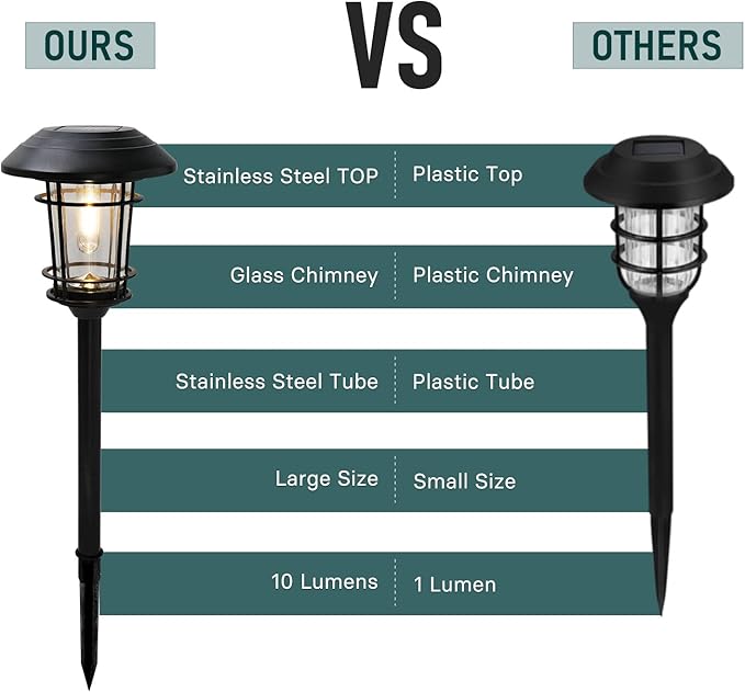 - SOLAR POWERED: The Edison-style and solar powered light bulbs are bright and cast a soft, cozy glow to your path. With warm light design our solar path lights can decorate your garden, patio, lawn, yard or driveway