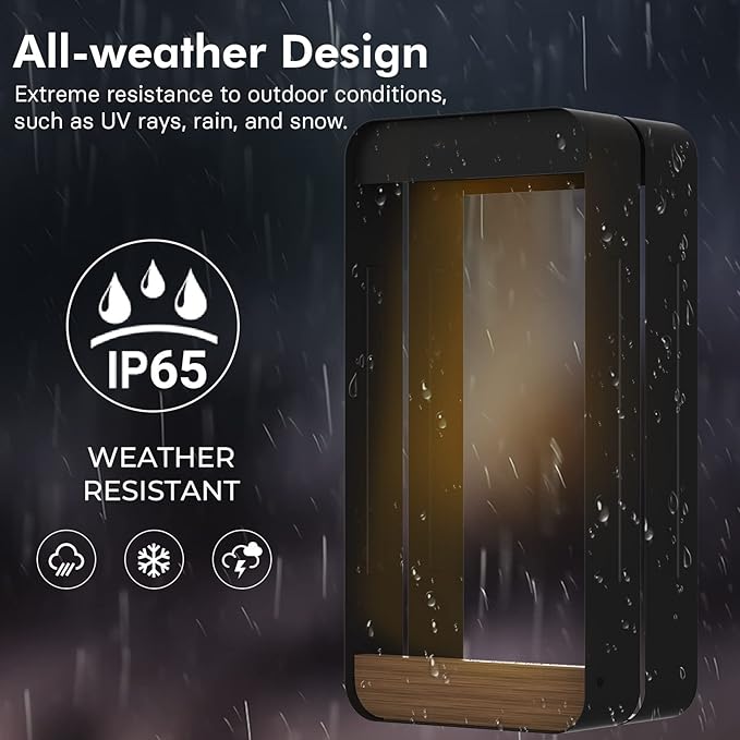 - ALL WEATHER MATERIALS: This wall light planter is crafted from e-coated and powdercoated steel for rust prevention and an all-weather wood-look base. IP65 waterproof rated to withstand various weather conditions, including heavy rain