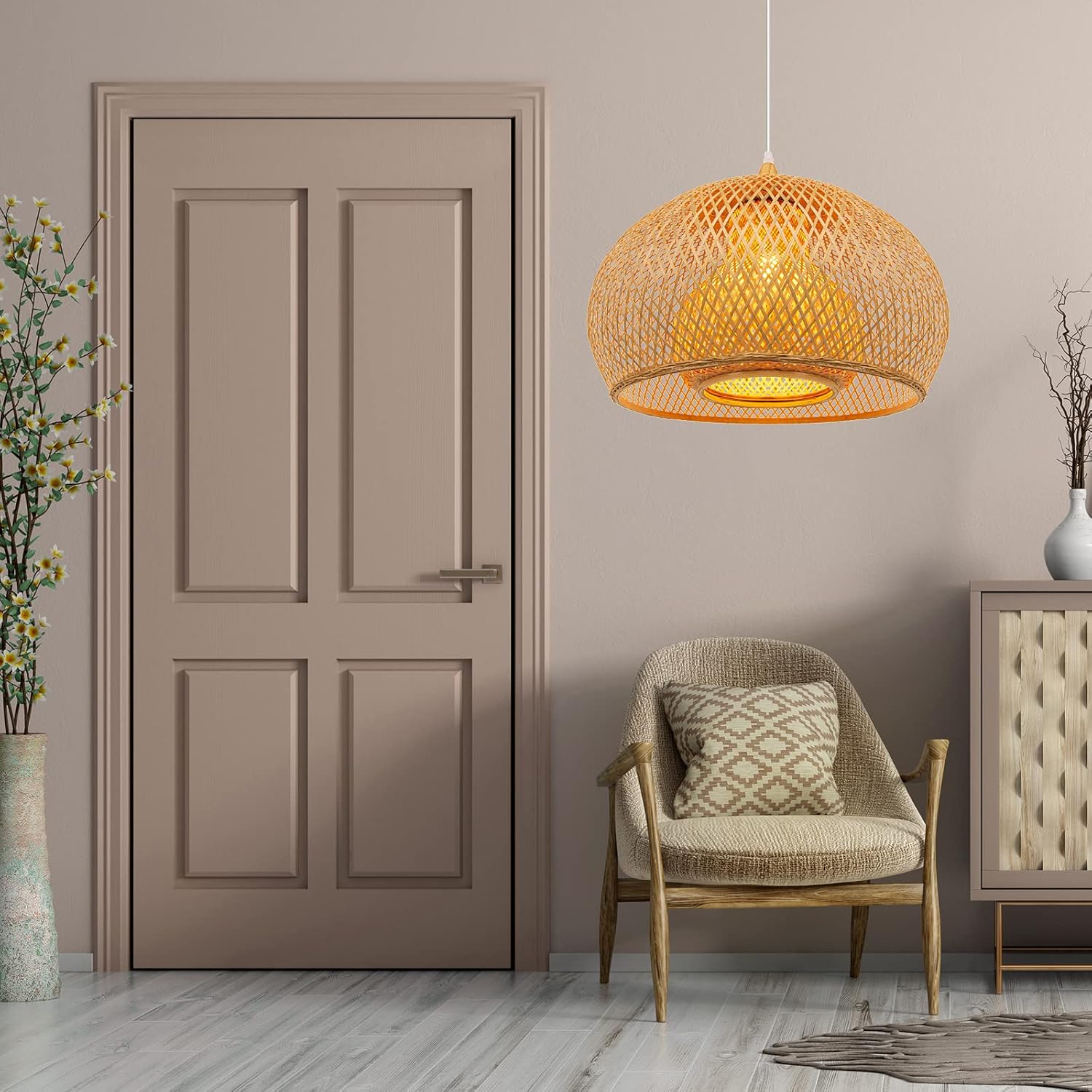 Arturesthome 23.6" Weaving Bamboo Pendant Light for Kitchen Island, Wicker Chandelier, Handmade Woven Hanging Ceiling Light Lampshade for Living Room Bedroom