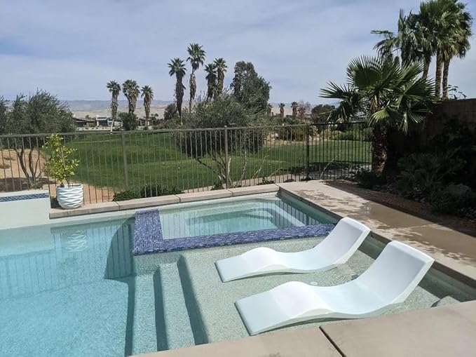 - FORM MEETS FUNCTION - Designed with contoured curves for ergonomic support, each pool ledge lounger offers comfort and visual elegance. These pool chairs are stackable too for easy storage.