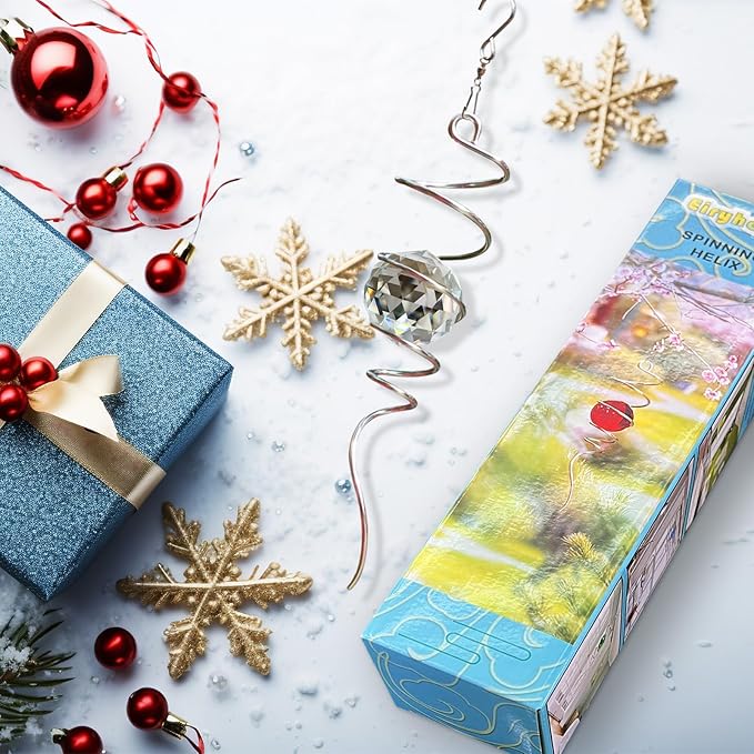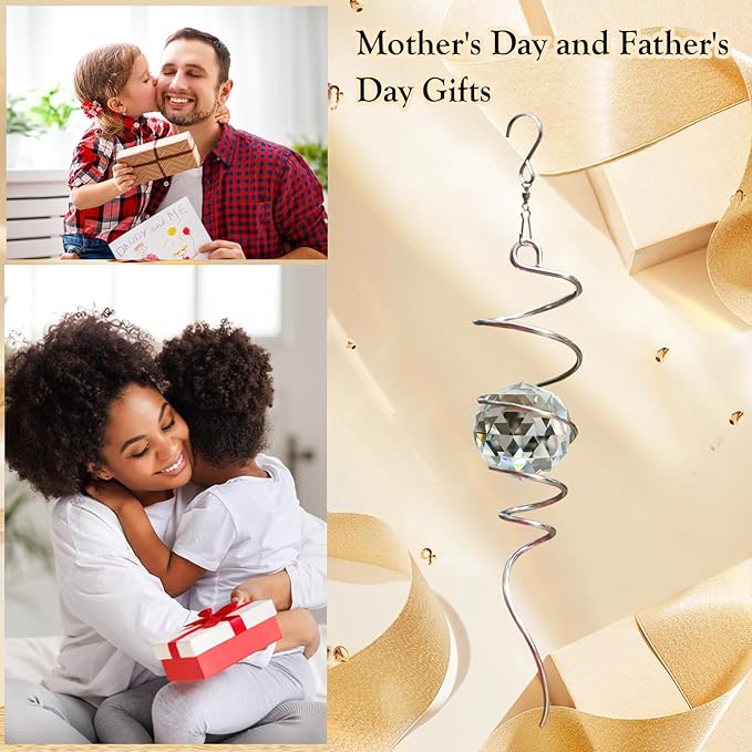 - 【 Meaningful Unique Gifts 】Clear Crystal symbolizes peace, harmony, purity.The Gazing Ball Spiral Tail Wind Spinner came in a beautiful gift box that was easily giftable. This magic ball spiral tail is a wonderful gift that will be a hit as a birthday gift, Thanksgiving gift, Christmas gift, housewarming gift, garden gift, Decor gift, etc.. The wind spiral with crystal ball is a perfect gift for birthdays, Thanksgiving Day, Christmas, etc. and any you loved people ( family, friend, etc.).