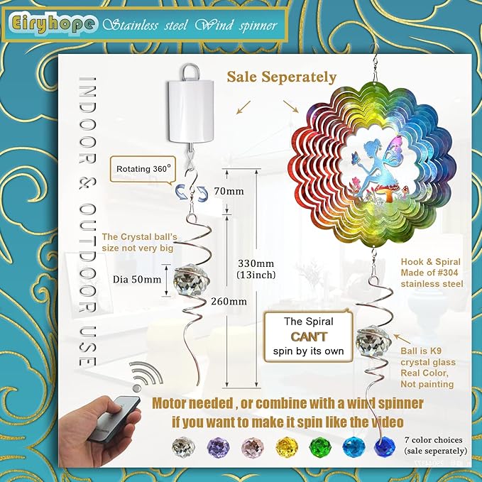 - 【 3D Wind Spinners Stabilizer 】The wind spinner spiral with a 360° swivel hook is easy to hang. Our wind spinner crystal tails are gorgeous additions to our range of 3D wind spinner accessories. Attached to the bottom of kinetic wind spinner, which adds another dimension to the overall look, also helps provide stability on windy days. Since the Wind Spinner Stabilizer Spiral Tail can't spin on its own, add a wind spinner motor (not included) to help it spin.