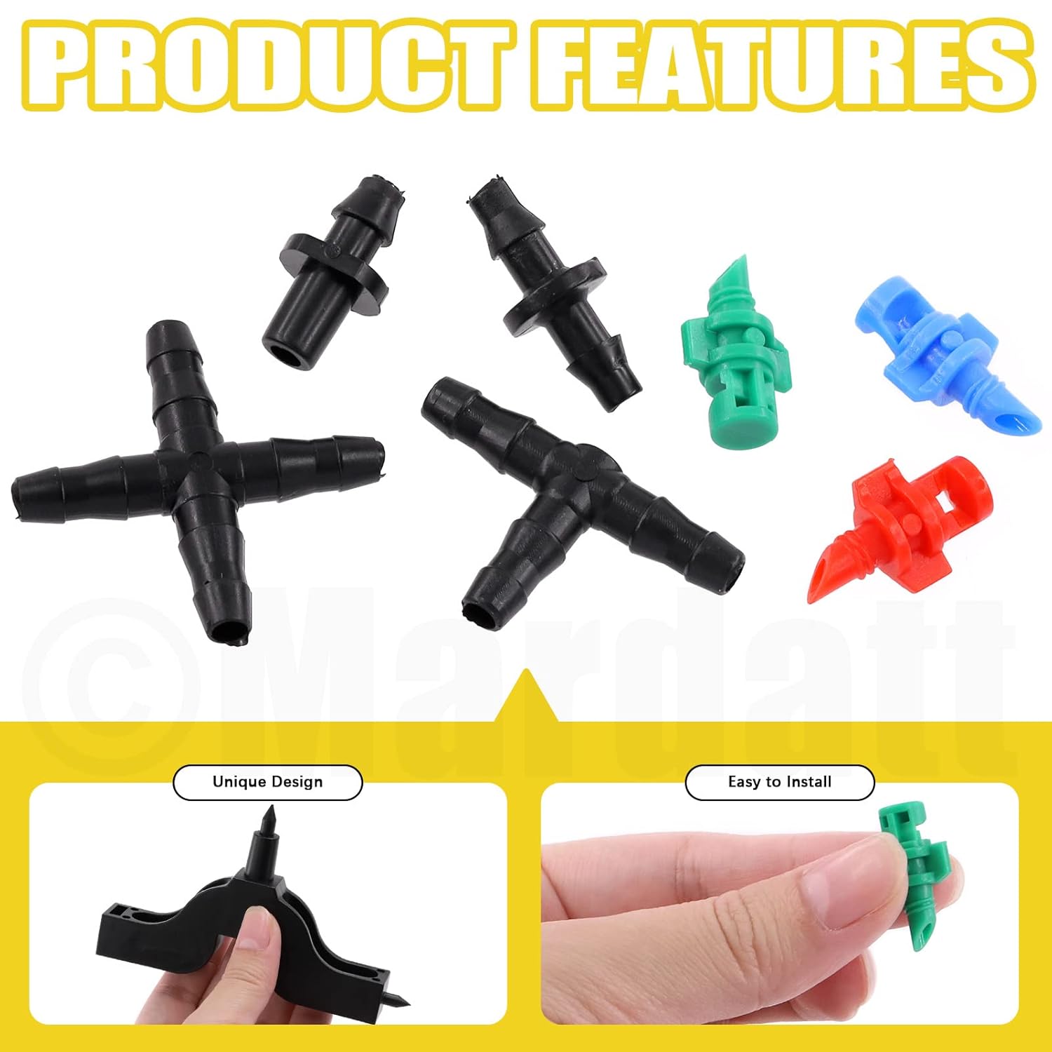- 〖Various Irrigation Fittings〗Featured with multiple types of irrigation fitting: single barbs and straight barbed, tee, 4-way coupling, helping create maintenance-free irrigation systems and guiding the water precisely to where you need it. Usually can be used to connect 1/4 inch drip irrigation pipes.