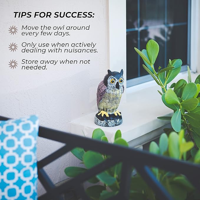 - MULTI USE - Place it in your garden or farmland as an owl statue or to protect your crops of fruits, vegetables, & plants. Widely used in orchards, gardens, barns, front lawns & trees. Keep your windows, boats or cars clean from bird droppings