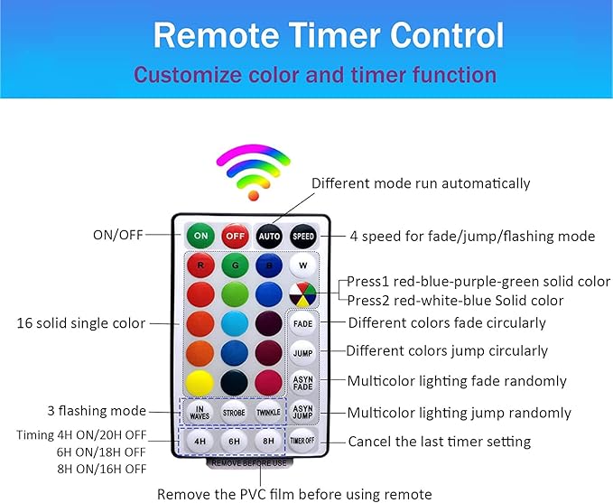 - Special Feature : Color Changing, Remote Control, 8 Lighting Modes, 18Colors