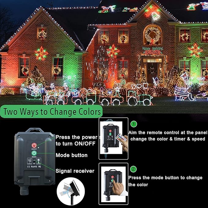 - 7 Lighting Remote Control & Timer: Use the 32 keys remote controller for easily operation.7 lighting modes make the PVC tube fairy string lights fabulous:FADE, JUMP, ASYN FADE, ASYN JUMP, TWINKLE, STROBE, IN WAVES.This decorative solar rope string lights make your house and garden charming and romantic. Timer function : 4H/6H/8H. Freely control the solar Christmas lights, COLOR, MODE and TIMER are all in your control.
