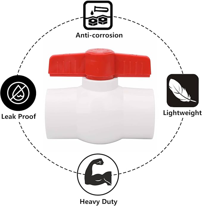 - 【Material】2pcs Heavy Duty 1-1/2 Inch PVC Ball Valve made of high-quality PVC, high-impact strength, resistant to frost and corrosion, long service life.