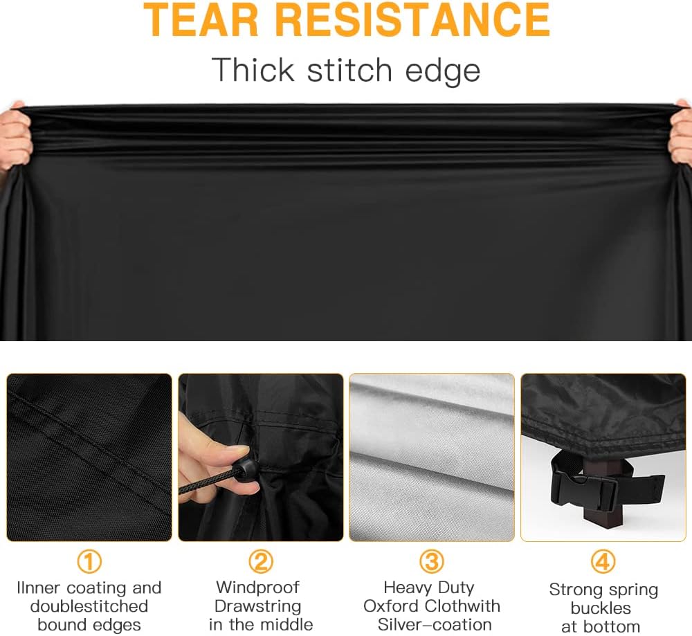 - Durable Waterproof & Anti-UV - Our BBQ Grill Cove for outdoor grill is Constructed with high tenacity fade & UV resistant upgraded material. Waterproof PVC coating, double stitched seams to prevent leaking, all weather protection your grill from harmful UV rays, strong wind, storm, rain, snow, dust, and debris etc. All-round protection of your Gas Grill and keeping your grill looking new.