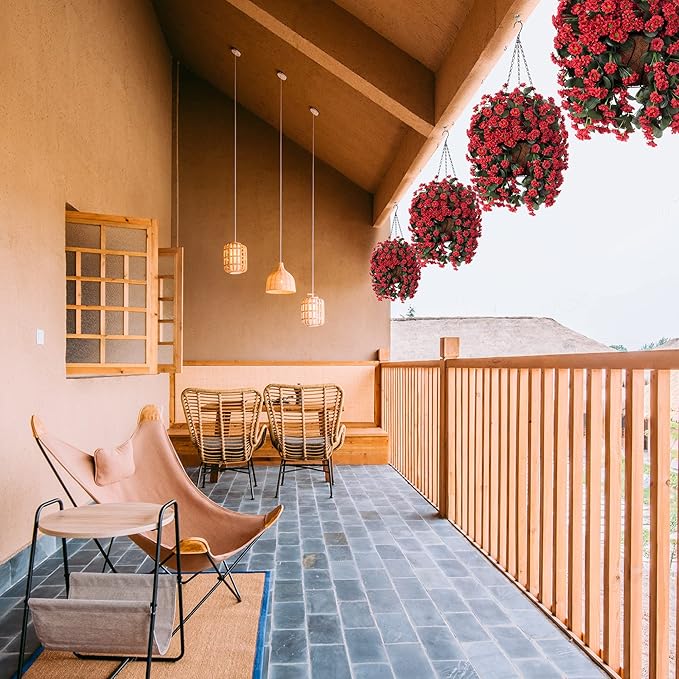 - ARTIFICIAL GREENERY DECORATION: The fake hanging flower in a basket looks real and stylish, making it the perfect hanging basket for your home, patio, balcony, garden, indoor and outdoor. It blooms all year and adds a sense of spring to your home