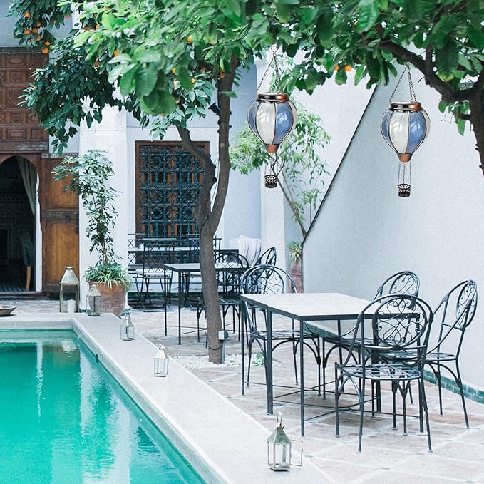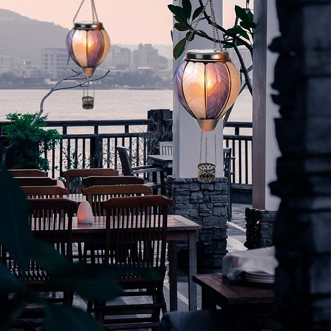 - 【Hot Air Balloon Design】This hot air balloon solar lantern is made of thick glass and a realistic flame lights. When the sun goes down, the flickering flame effect resembles a real hot air balloon, creating an amazing visual effect and adding a great atmosphere to your garden, patio and yard.