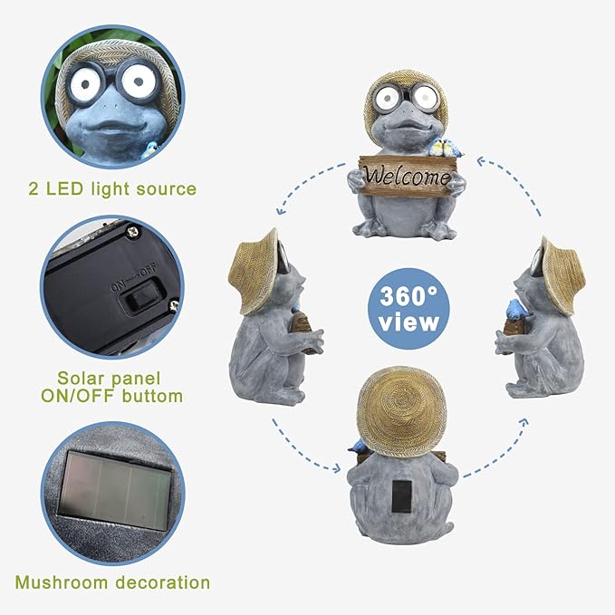 - 【Cute Outdoor Decor】he Frog outdoor decorations for patio is made of resin material,which is so sturdy that it won't be broken easily.High-quality,durable outdoor frog garden statue is destined to accompany you to spend a leisure time and witness your plants to grow better.