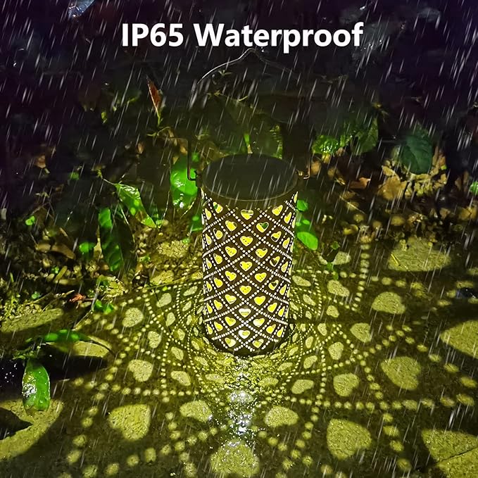 • Durable, Waterproof & Environment-friendly -The outdoor lantern is made of sturdy+thickened metal and durable. IP65 waterproof rating design, don't worry about rain, solar garden lights can work on rainy days. Solar power supply, no electricity charge, no power cord required, easy to use.