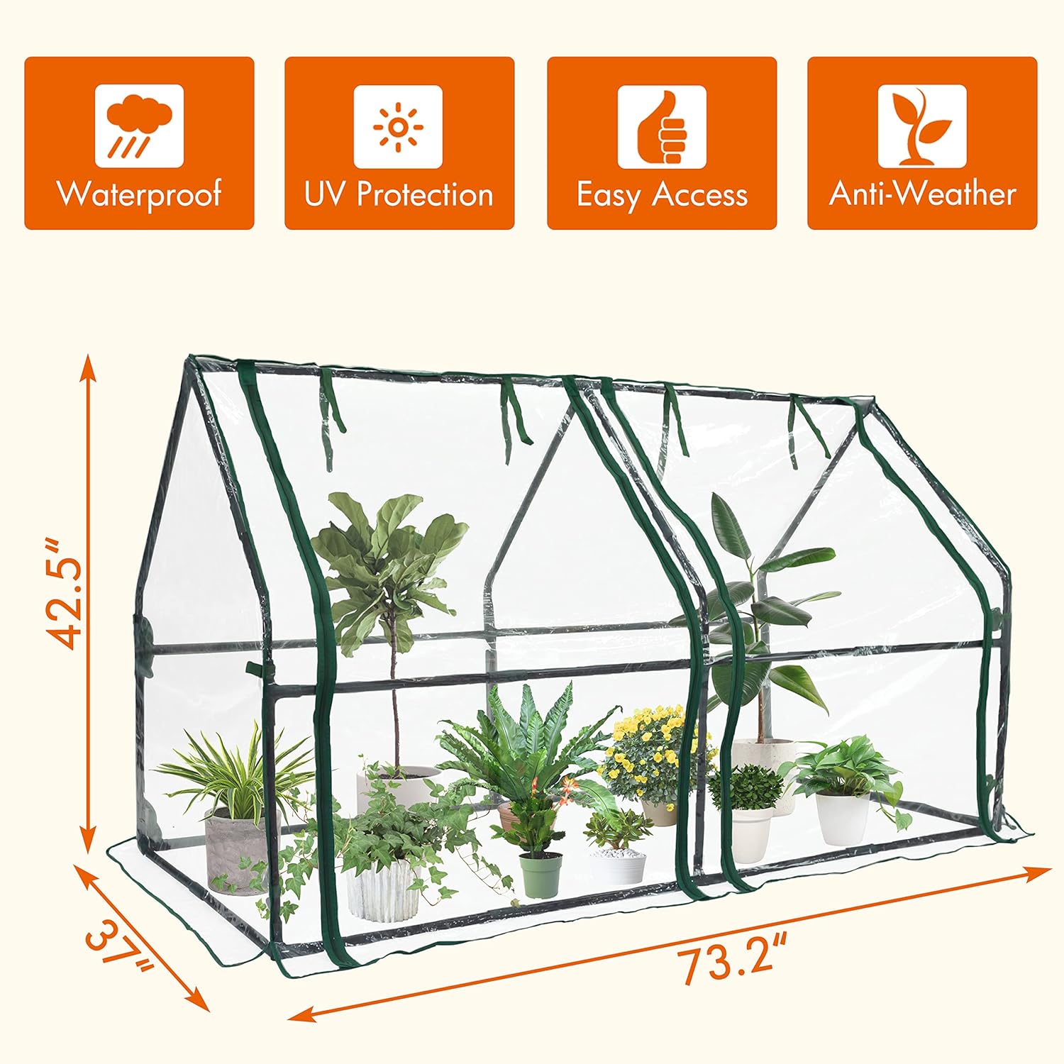 Gardzen Mini Greenhouse Heavy Duty Portable Green House, Clear Tent Small Greenhouse for Indoor Outdoor Plants 71.7”(L) x36.2”(W) x42.5”(H)