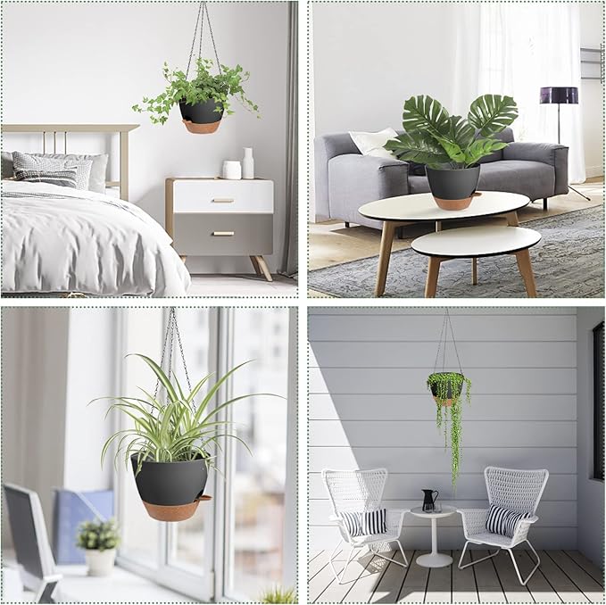 - Removable Trays - Hanging pots for plants indoor tray can be removed as a reservoir for self-watering, where excess water from the self-watering plant pots is drained into the tray, which stores a certain amount of water for the plants (7-14 days). You don't have to worry about your plants running out of water when you're away on a business trip or traveling.