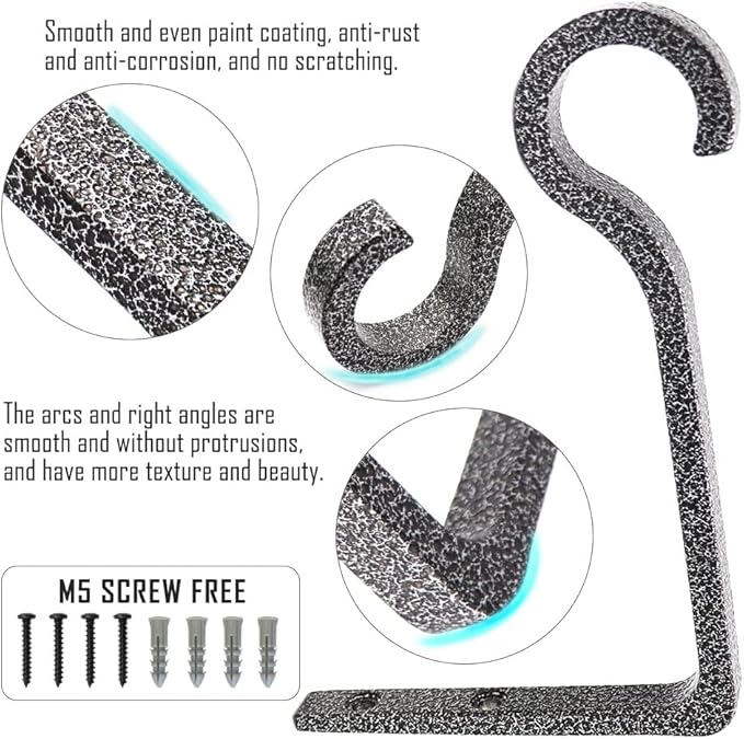 - 【SIMPLE AND ELEGANT】Adopt retro hanger design, simple and elegant, add retro beauty to your home and garden. You can use QIEGL hanging plant hook to decorate your living room, bathroom, bedroom, entrance, terrace, porch, garden, backyard, wooden deck fence and other indoor and outdoor places.