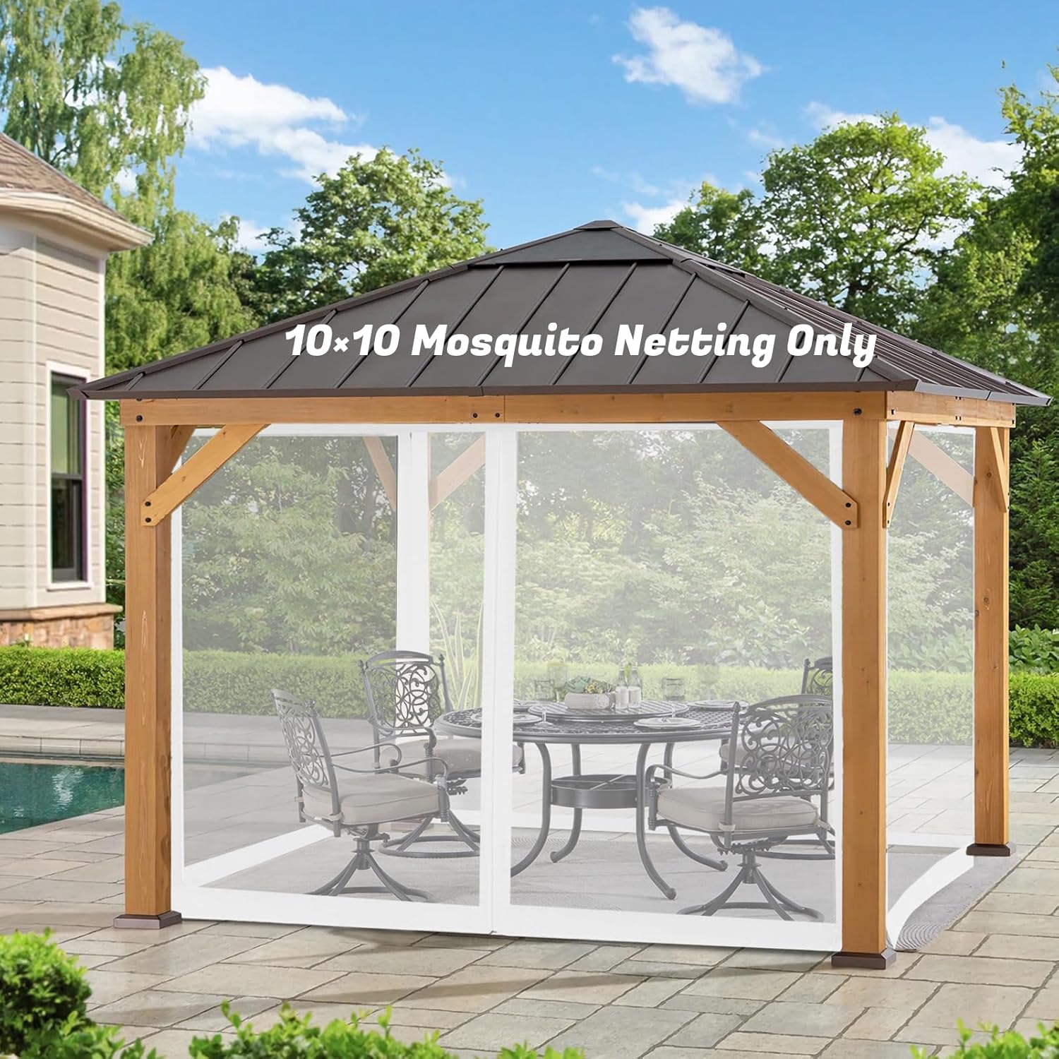 - [Tips & Service]: Only replacement mosquito net, please measure your existing gazebo frame before ordering. Mesh Screen Dimensions: 9.85 ft (L) x 9.85 ft (W)x 6.5 ft (H). If you have any questions, please feel free to contact us, we will reply within 12 hours.
