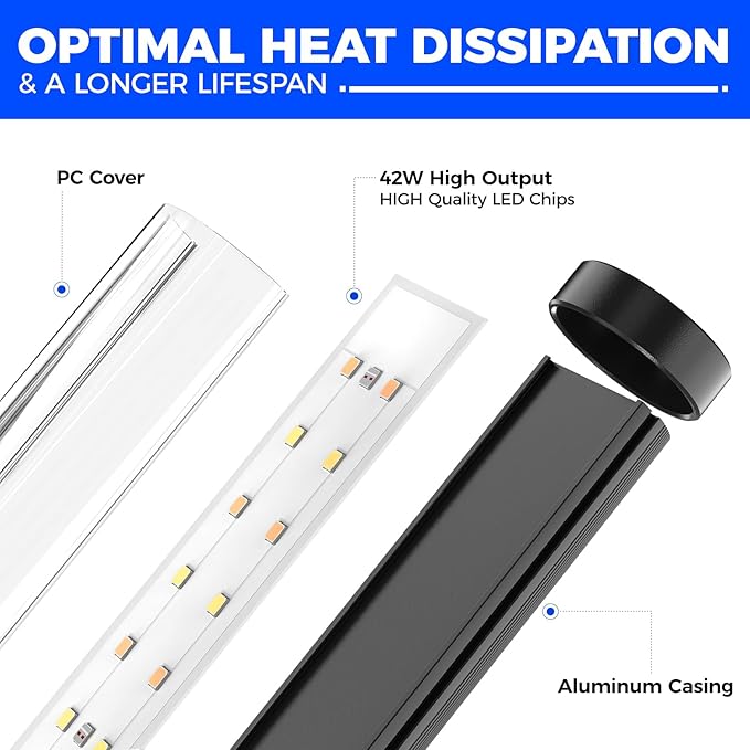 - High-output and Effective Spectrum: The full spectrum grow light with a high output of 42 watts and up to 169 LEDs. Moreover, it is equipped with 660nm red wavelength chips to satisfy your plants' needs at different stages.With a CRI of 88, this grow light accurately shows colors, aiding in plant health monitoring and growth