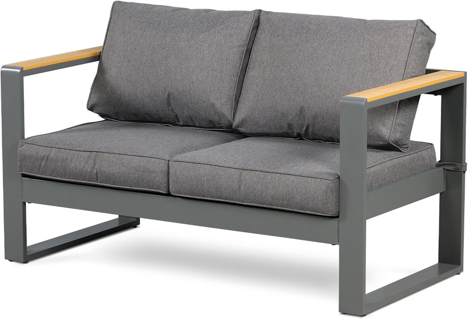 - Durable Aluminum Construction: Crafted from premium, thick-gauge 100% aluminum with a protective powder-coated finish, this modern outdoor patio loveseat is engineered to withstand harsh weather, resist fading, cracking, and rust for long time of sturdy use, while remaining surprisingly lightweight